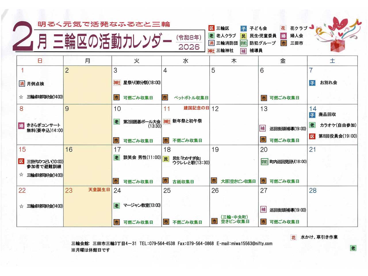 トップページニュース2026年2月 活動カレンダー投稿: 2026年1月27日令和7年12月 市指定ごみ袋(家庭用)がない場合のごみ出しについて投稿: 2025年12月19日令和8年 きさらぎコンサートのご案内投稿: 2025年12月19日2025年12月活動カレンダー投稿: 2025年11月28日2025年 秋祭り投稿: 2025年11月23日