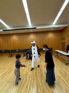 今年もサンタさんやトナカイさん、その他キャラクターに扮した青年団の皆さんにご協力いただき、三輪会館で釣りゲーム、ピンポンカップ、竹のけん玉、折り紙、輪投げを楽しみました。