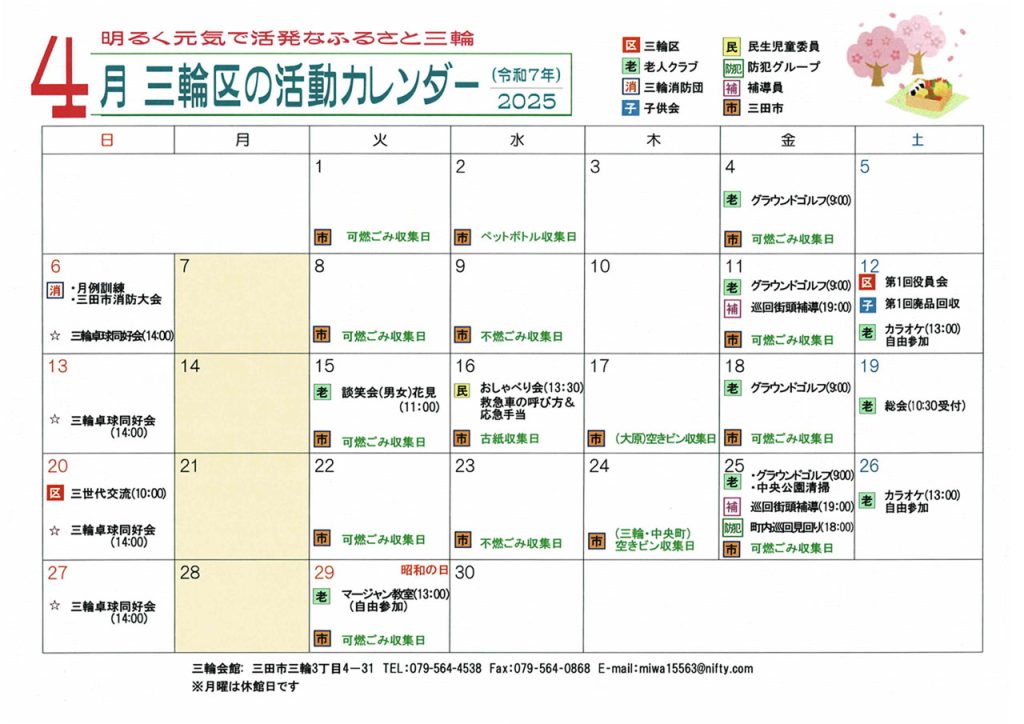 4月16日には老人クラブとのコラボで『救急車の呼び方&応急手当』について三田市消防本部救急課課長の講話を聞きました。他に熱中症の予防方法と対処法、手軽な消火器の紹介、防災食の備蓄方法などたくさんの学びがありました。